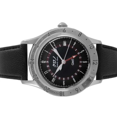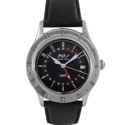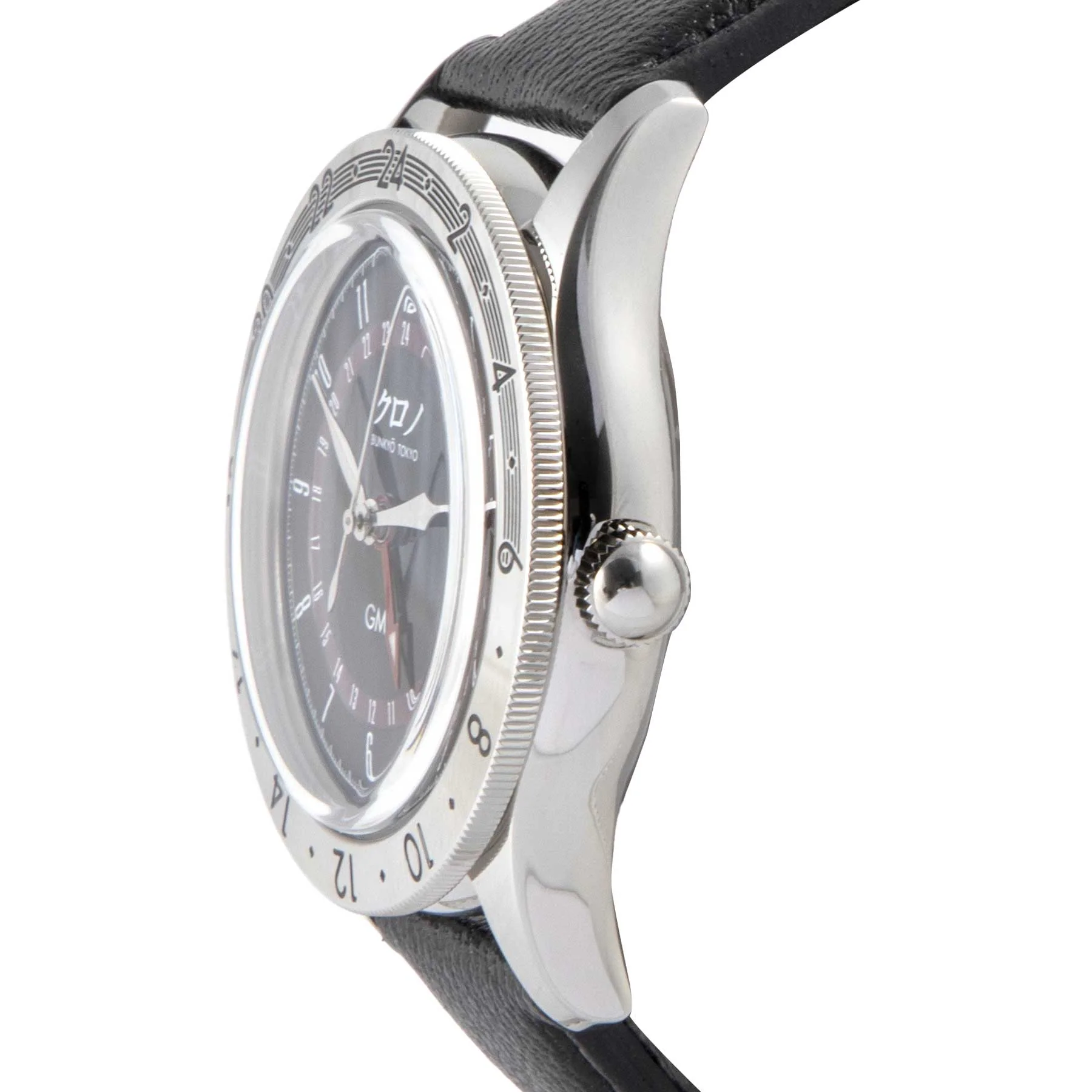 This Bunkyo Tokyo Kurono GMT 1 38mm, steel case, black dial, steel bezel and black leather strap in an unworn condition. Mechanized by Bunkyo Tokyo calibre Miyota 9075 automatic movement. Includes box and Bunkyo Tokyo sales warranty card dated October 2026.
